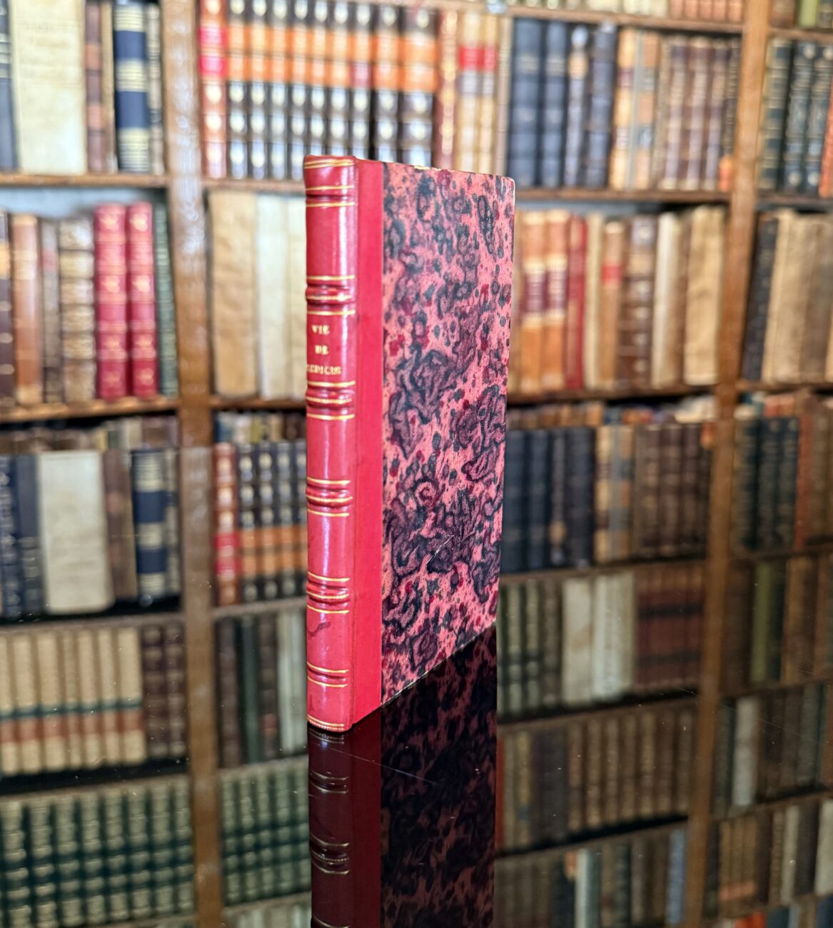 12º (132 x 77 mm) Holandesa. Piel y aguas artesanales. Lomo con nervios, hierros e hilos dorados.