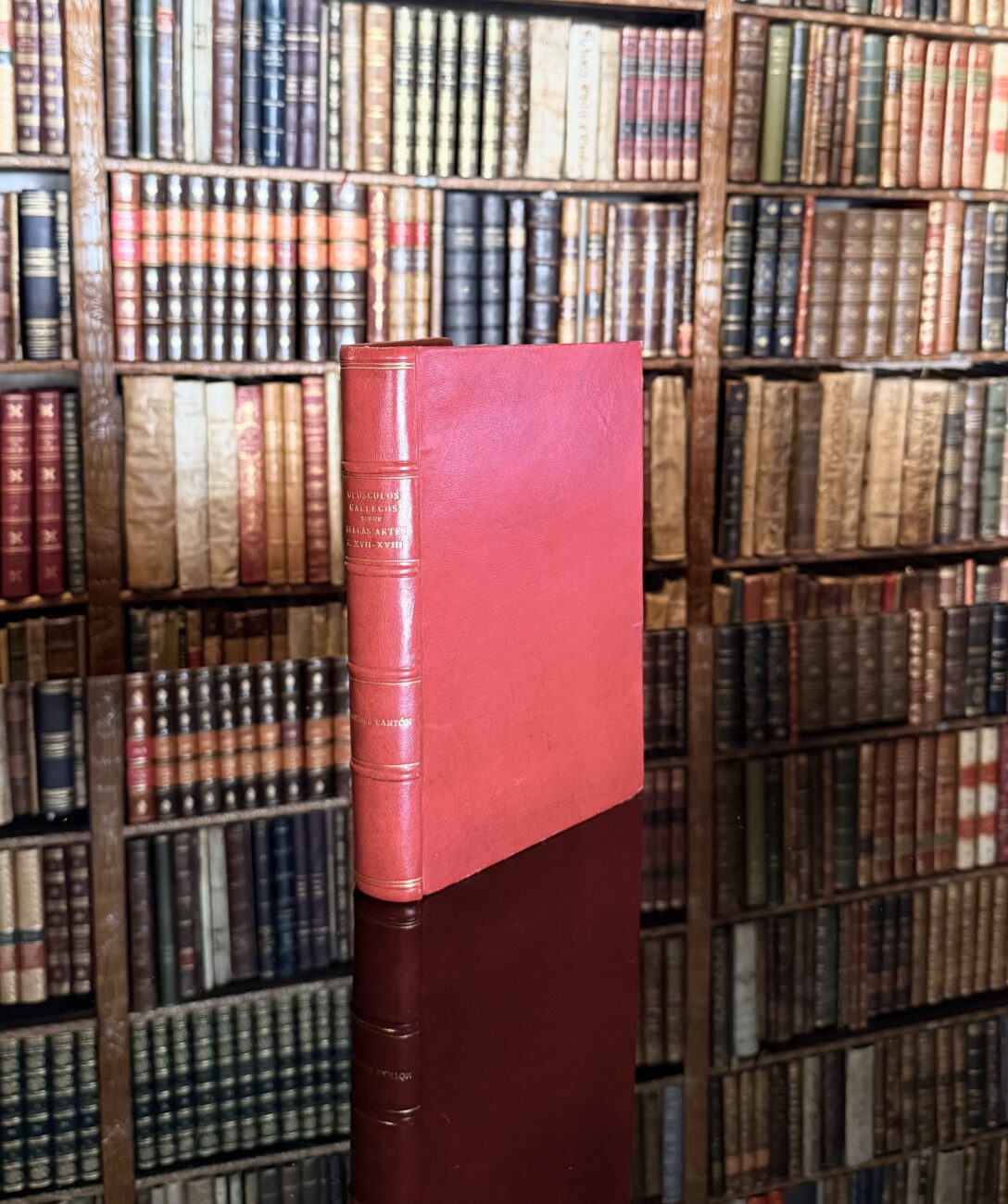 Folio (255 x 180 mm.) Plena piel. Lomo con nervios e hilos dorados y guardas artesanales de seda.