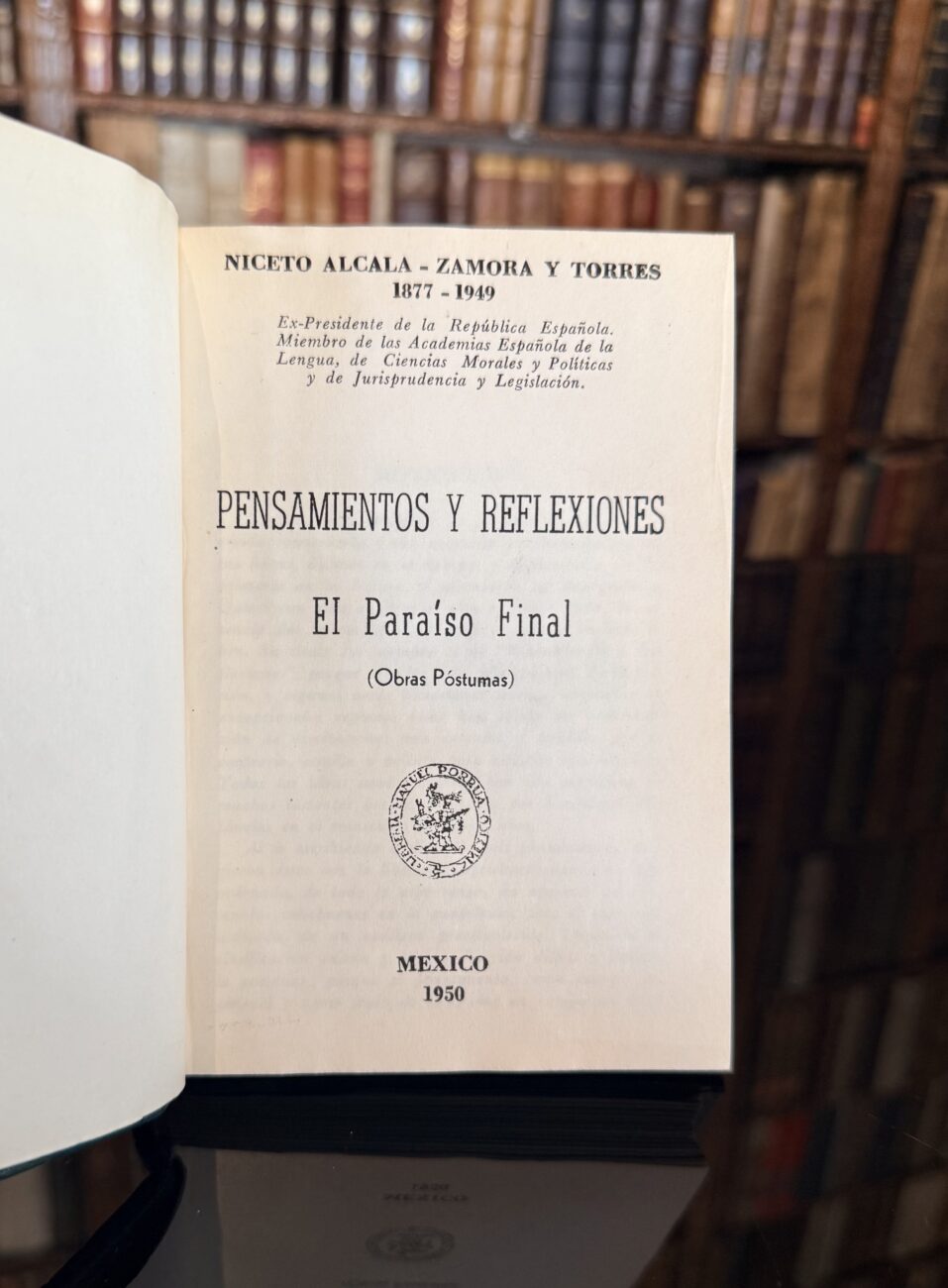Primera edición publicada en México poco después de su muerte en 1949. Recoge sus meditaciones personales, pensamientos filosóficos y reflexiones espirituales escritas durante su exilio, tras su destitución como presidente de la Segunda República Española y la amarga experiencia de la Guerra Civil. Lejos de ser un texto político adopta un tono introspectivo y contemplativo, abordando temas como la existencia, la fe, la justicia divina, el fracaso humano y la esperanza en una redención trascendente.