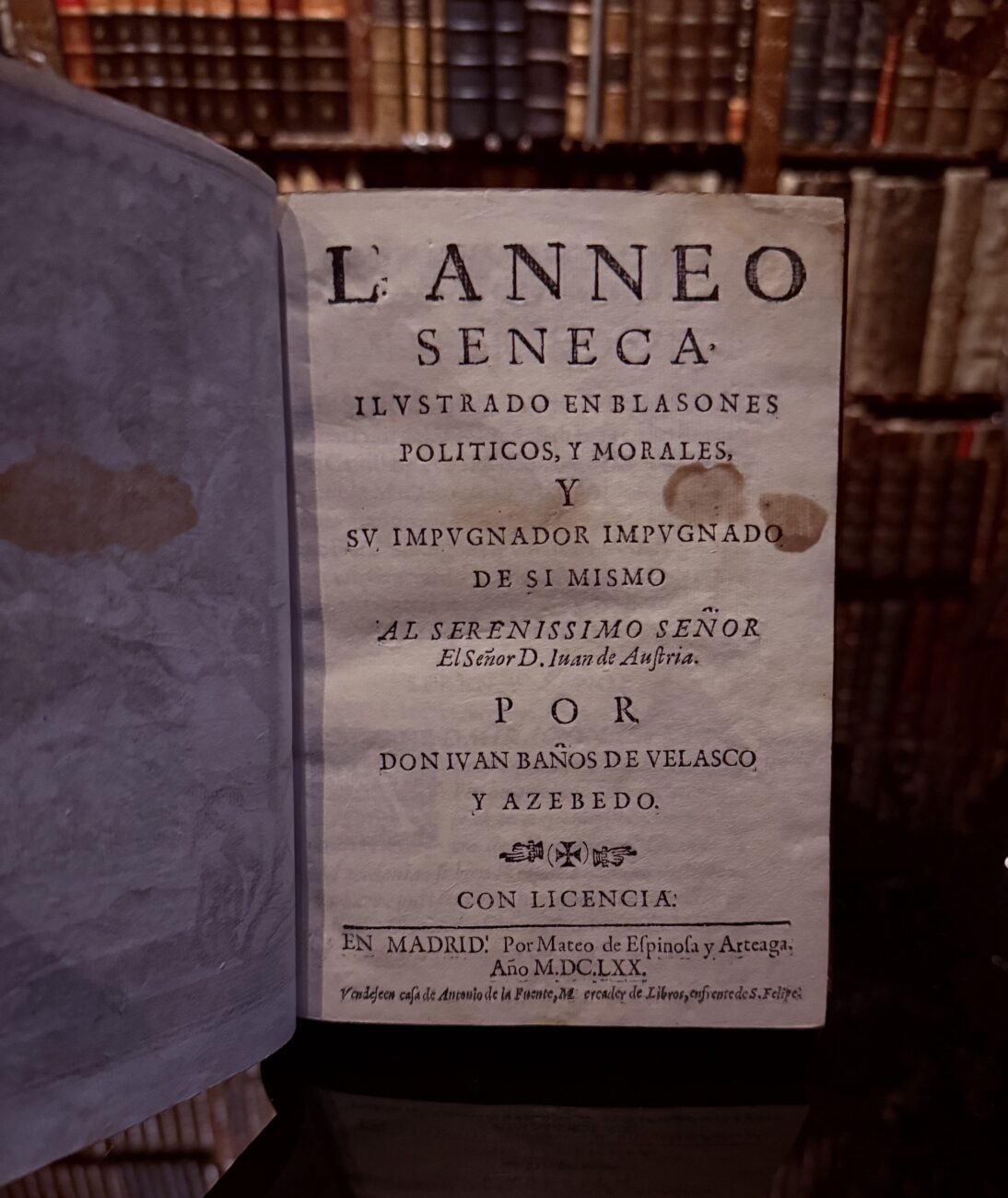 Primera y única edición de esta obra de emblemas políticos y morales, que toma como base la obra y autoridad moral del filósofo Lucio Anneo Seneca.