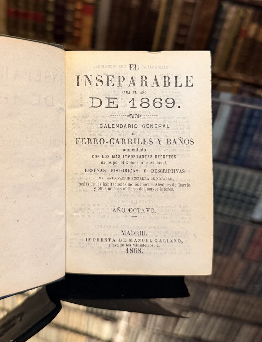 El INSEPARABLE para el año de 1869. CALENDARIO general de ferro-carriles y baños aumentado con los más importantes decretos… reseñas históricas y descriptivas de cuanto Madrid encierra de notable…