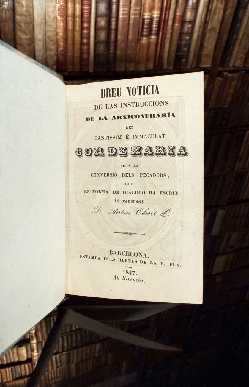 Primera edición de este pequeño devocionario, en forma de diálogo, típico del apostolado popular de Claret en la Cataluña del XIX, para propagar la participación, la devoción mariana y la conversión religiosa.