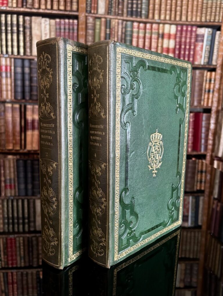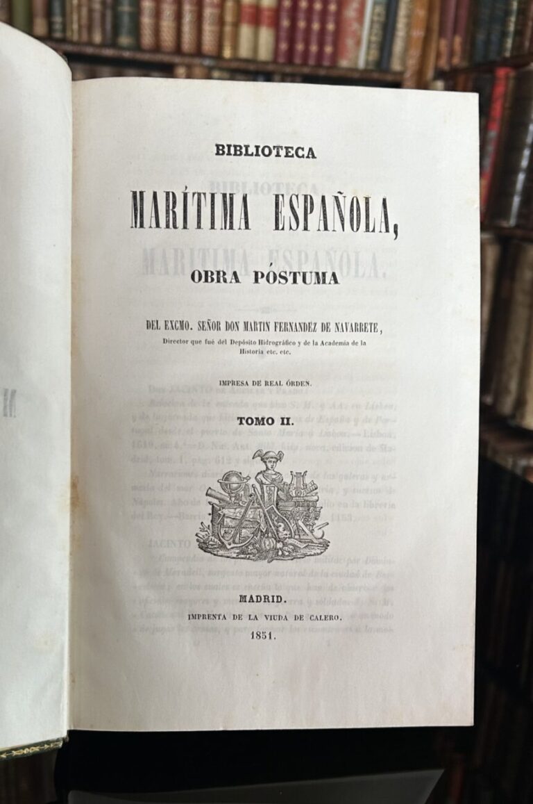 Magnífico ejemplar de esta obra fundamental para el estudio de la historiografía naval española del siglo XIX. Consta de dos volúmenes que recopilan una extensa cantidad de documentos, cartas y textos históricos relacionados con la navegación y la historia marítima de España.