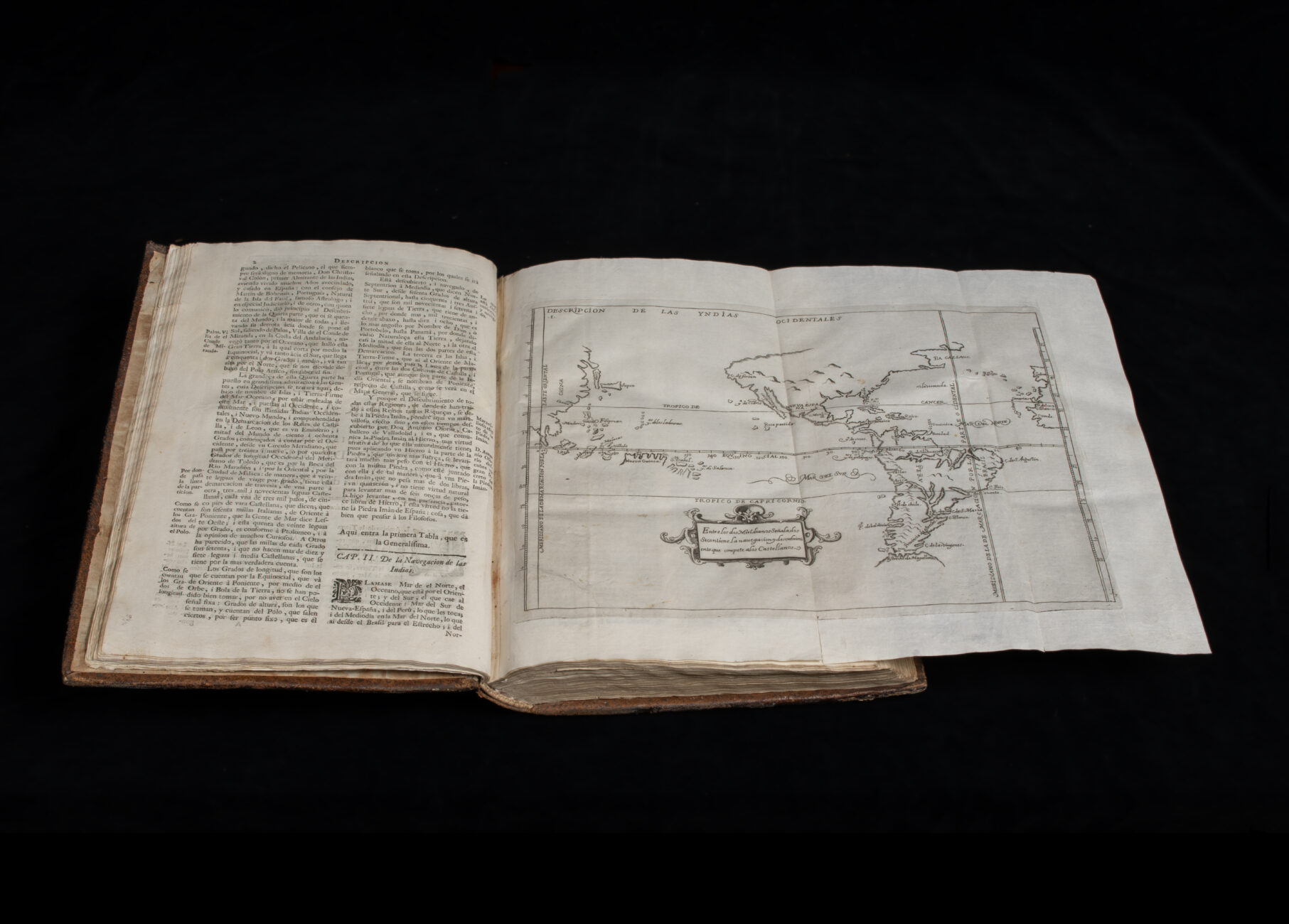 The “Descripcion de las Indias Occidentales” is in volume I, with a different engraved title and separate foliation, it includes 14 maps of the American coasts, Caribbean, Gulf of Mexico, Pacific, Philippines, Moluccas Islands and Japan. The “Tabla General de cosas notables” is bound at the end of volume V.