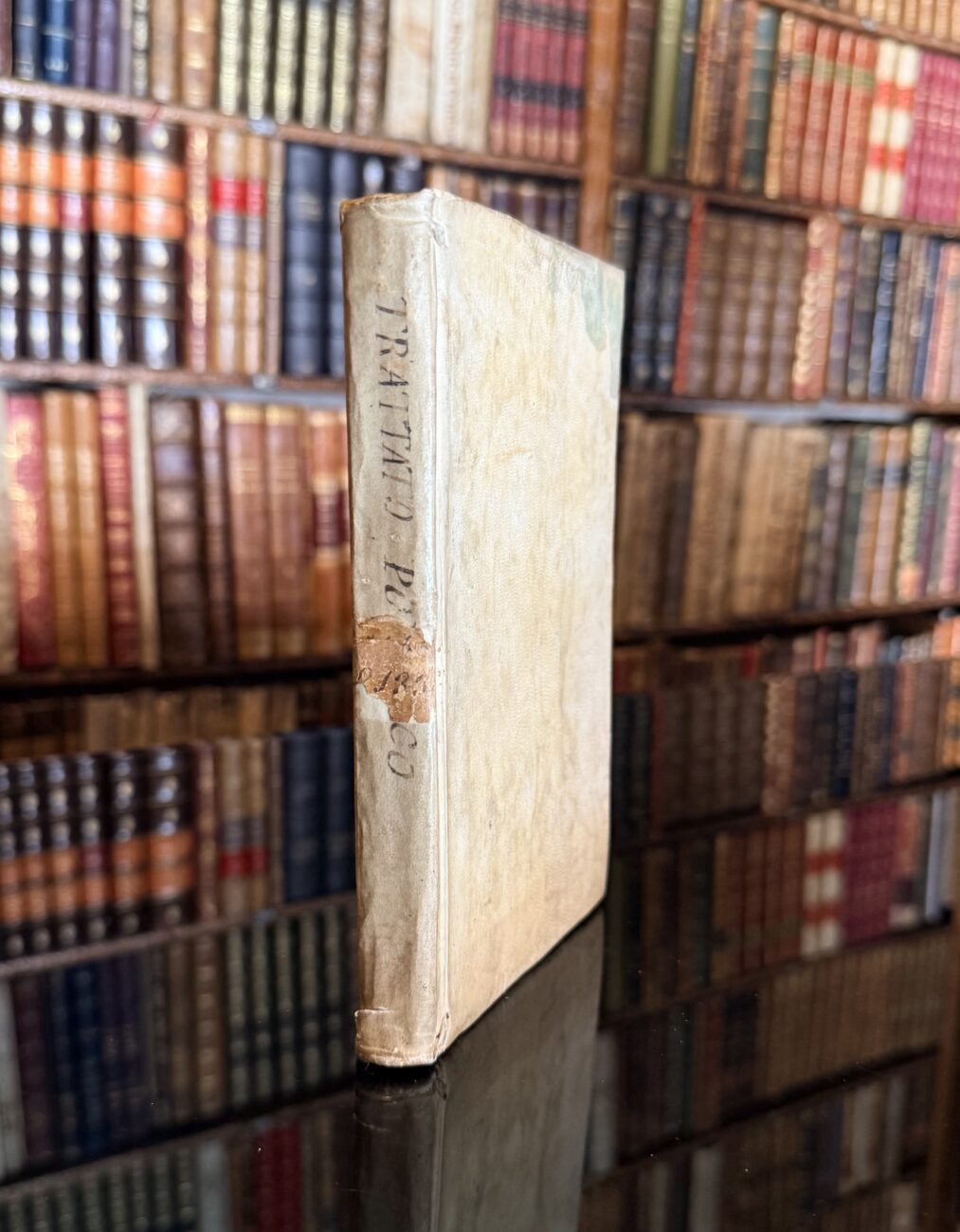 8º (183 x 115 mm.) Pergamino de época con título rotulado en el lomo..