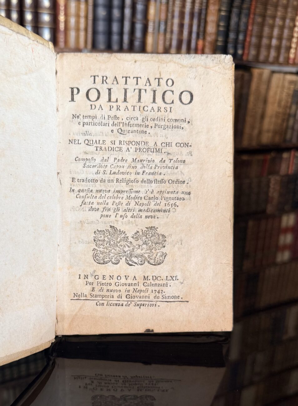 Trattato politico da practicarsi ne’ tempi di Peste, circa gli ordini comuni, e particolari dell’ Infermerie, Purgazioni, e Quarantene.