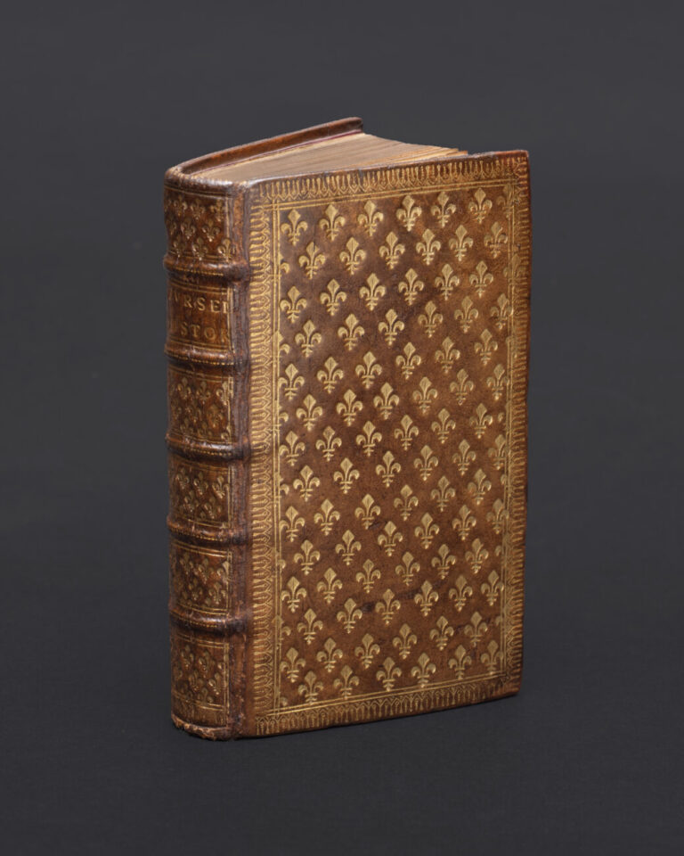 Procedencia: William Warner (1693-1766), con su exlibris de la orden británica de Bath, con el motto al timbre del blasón en filacteria circular: “Tria Juncta in Uno”.